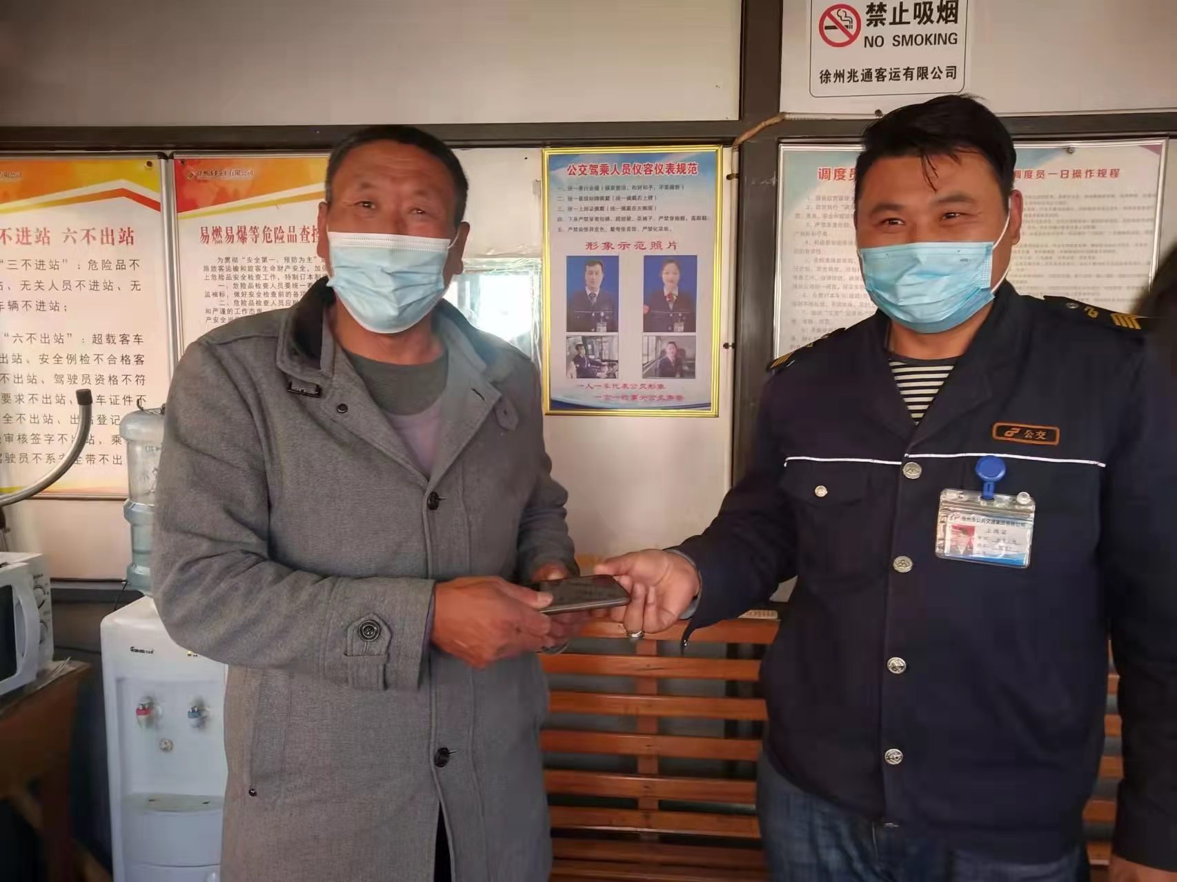 2022年3月10日上午,一位老年乘客帶著一面印有“盡職盡責(zé),拾金不昧”的錦旗來(lái)到了徐州公交新巴士公司淮西調(diào)度室,專程來(lái)感謝1路駕駛員王雪松。