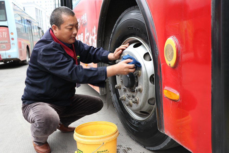 85路線經(jīng)過礦區(qū)路況差,一趟車下來車就很臟了,黨員祁保華把勞動當(dāng)成一種樂趣,只要車輛停下來,他就會拿起刷子,把車身從前到后刷上一遍,再用抹布細(xì)細(xì)擦,輪胎更是一趟一擦,一天8個來回,他就要擦8遍輪胎。晚上在文化宮跑夜班,都晚上9點(diǎn)了,他還借著微弱的路燈,里里外外把車打掃干凈。在他的帶動下,85路線駕駛員由觀望到比賽,都成了車輛保潔的好手。