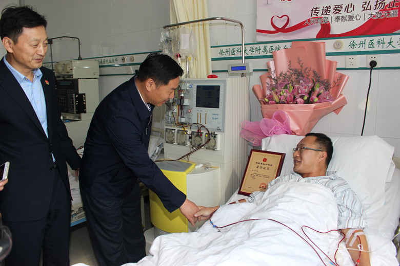 自7月底接到通知的這段時(shí)間,鄭剛一直積極配合著,希望保持最佳的身體狀態(tài)進(jìn)行捐獻(xiàn)。他努力克制自己,戒煙戒酒,鍛煉身體,增加高營(yíng)養(yǎng)的飲食調(diào)理。喝不慣牛奶的他甚至強(qiáng)迫著自己一天喝兩包奶。國(guó)慶節(jié)幾天,他突然感冒發(fā)低熱,竟忍著沒(méi)敢吃藥……鄭剛所在的單位也給予了大力的支持和配合,10月25日入院,徐州公交為他舉辦了隆重的歡送儀式,董事長(zhǎng)、總經(jīng)理杜紅軍等領(lǐng)導(dǎo)給他送來(lái)了慰問(wèn)金,安排好他的休息時(shí)間。