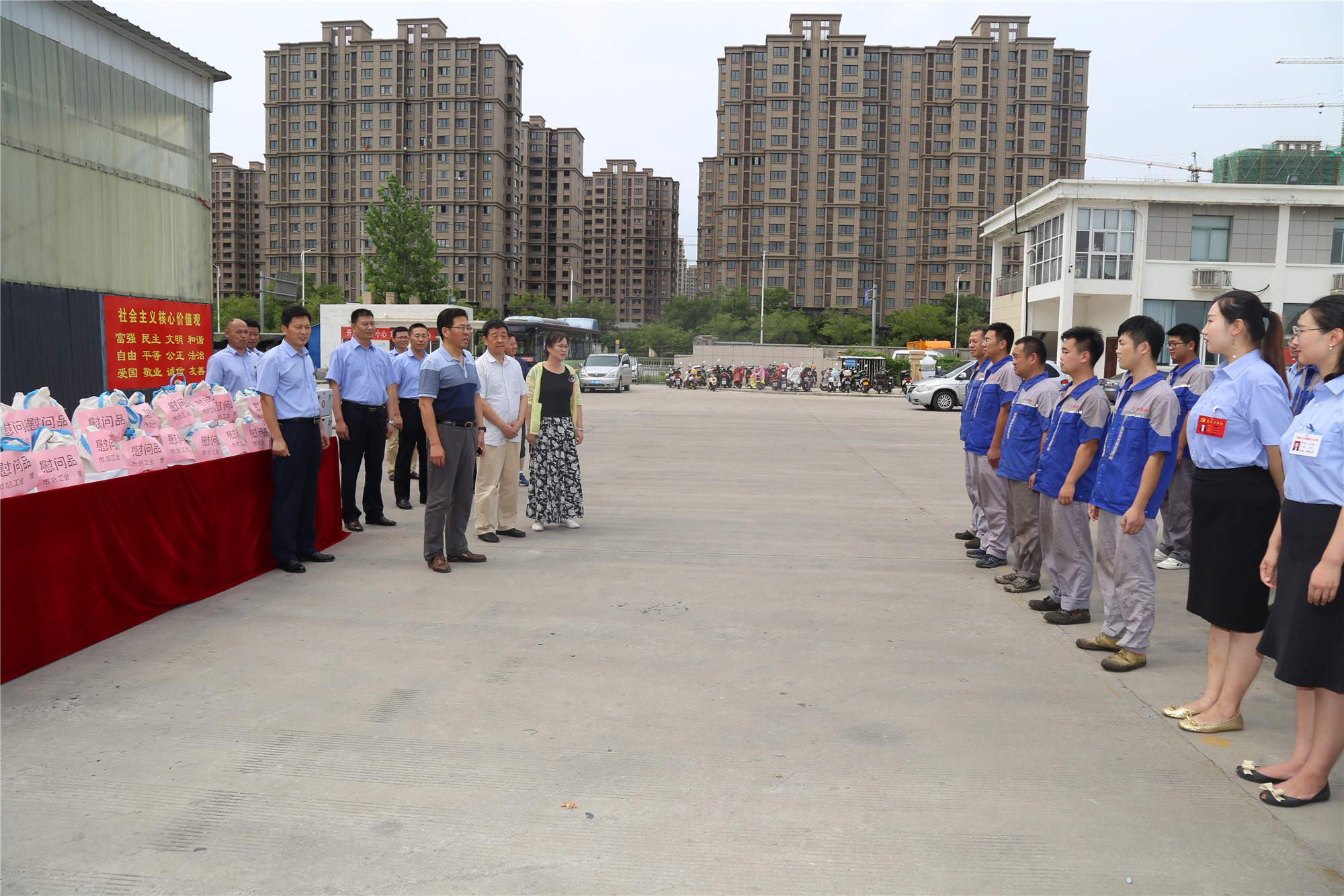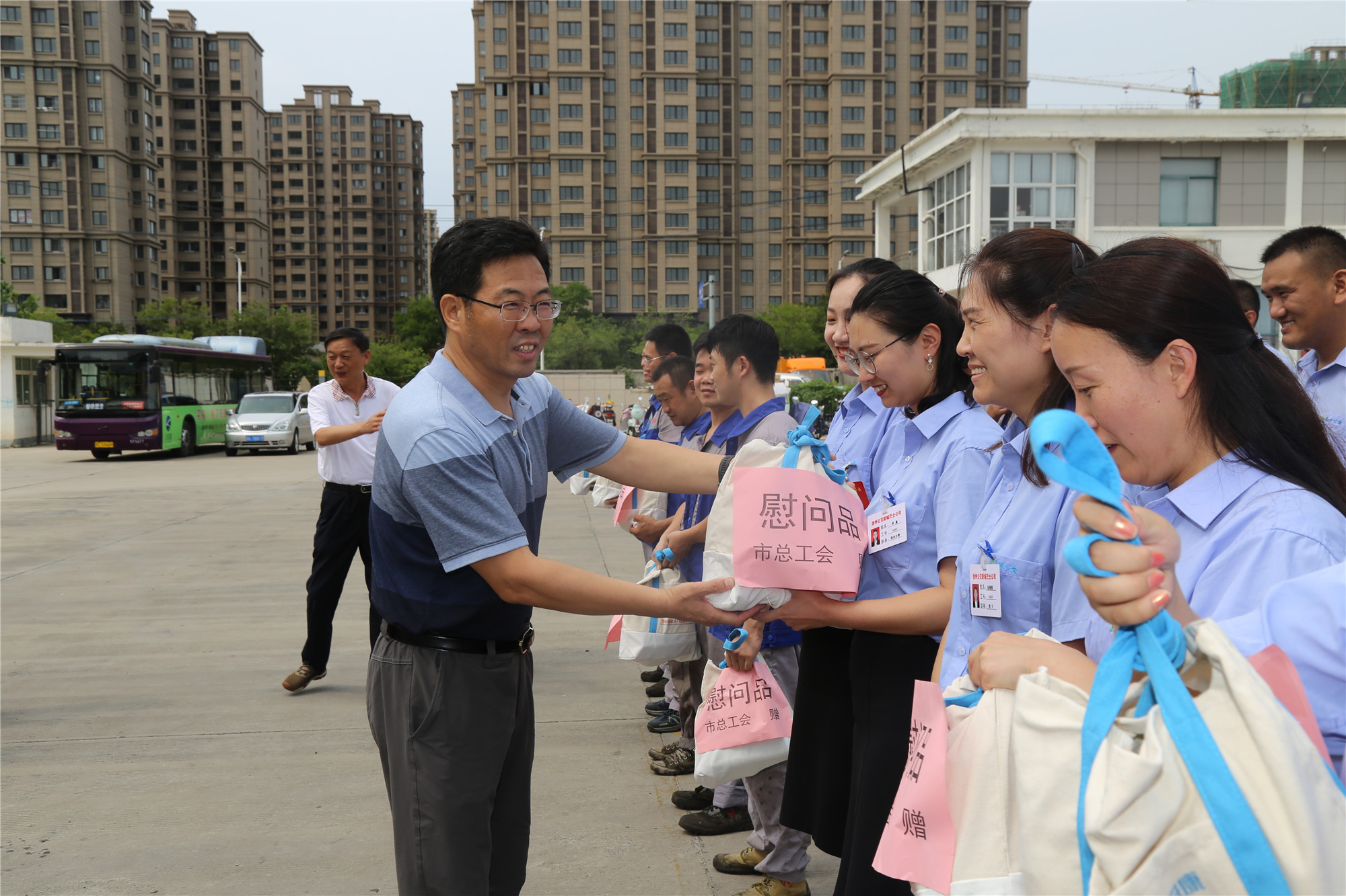 慰問現(xiàn)場,市總王建民副主席親切地公交職工們一一握手,并給他們送上防暑降溫“清涼禮包”、醫(yī)用急救箱和《如何防止職業(yè)病》等安全書籍,對大家不畏酷暑堅守工作崗位的辛苦付出和不懈努力,表示了衷心的感謝;并強調(diào)要高度重視職工健康和安全,扎實做好高溫期間防暑降溫和安全生產(chǎn)工作,多關(guān)注關(guān)心職工身體狀況,保障高溫一線職工的安全、健康,確保安全生產(chǎn);并叮囑廣大職工要增強自我保護意識,合理休息、注意身體。