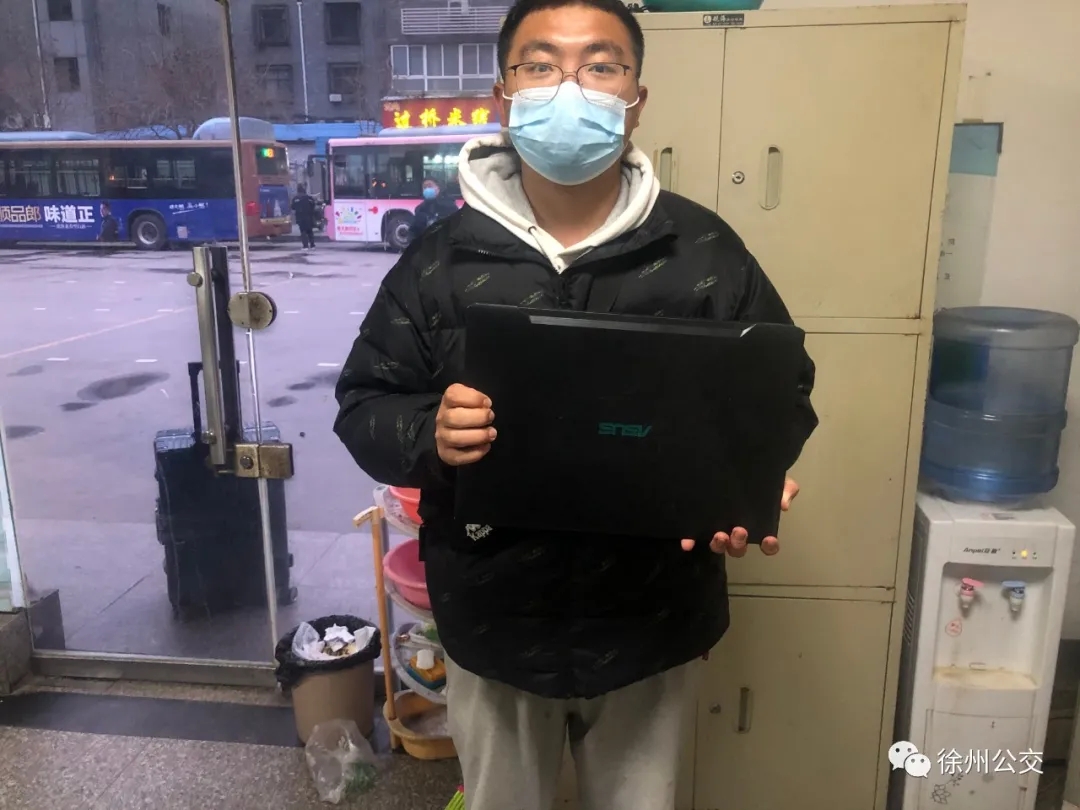 此時,專1路1696號車到達(dá)徐州站,駕駛員王強(qiáng)開始打掃車輛衛(wèi)生、對車廂進(jìn)行通風(fēng)、消毒,忽然,他發(fā)現(xiàn)車廂后座位上有一個藍(lán)色雙肩背包,打開發(fā)現(xiàn)里面有一臺筆記本電腦。王強(qiáng)隨即撥打車隊電話報備,并把背包轉(zhuǎn)交給終點站工作人員登記保管。工作人員在包里找到了失主的聯(lián)系方式,很快聯(lián)系到失主陳先生。