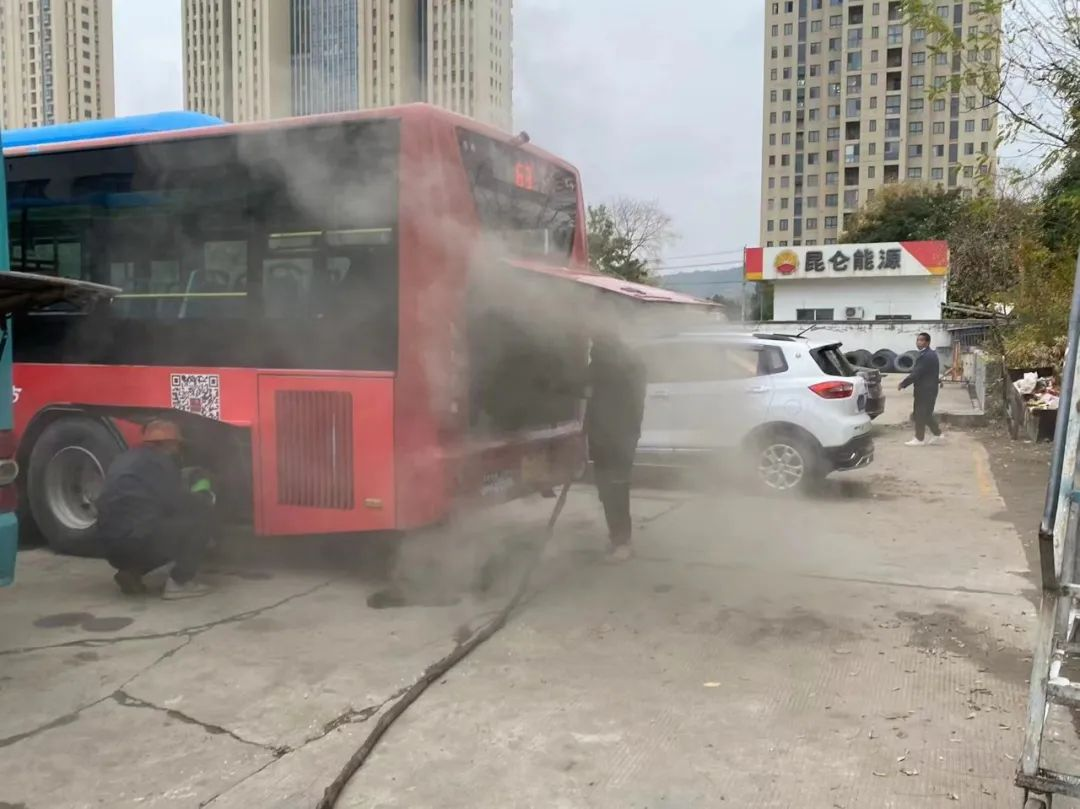 目前,公交集團(tuán)老舊車(chē)輛較多,純電動(dòng)車(chē)輛占比較小,常規(guī)車(chē)輛年限使用較長(zhǎng),導(dǎo)致部分車(chē)輛發(fā)動(dòng)機(jī)底部、機(jī)油散熱器、液壓助力轉(zhuǎn)向泵等部位表面長(zhǎng)期附著油灰。各維保車(chē)間雖定期組織人員進(jìn)行清理,但是受場(chǎng)地條件及設(shè)備因素制約,效果不明顯,機(jī)務(wù)安全隱患較大。為杜絕安全隱患,確保公交車(chē)輛正常使用,近日,徐州公交金通公司通過(guò)對(duì)外招標(biāo)的形式簽訂專(zhuān)業(yè)干冰清洗公司,對(duì)公交車(chē)輛進(jìn)行干冰清洗工作。