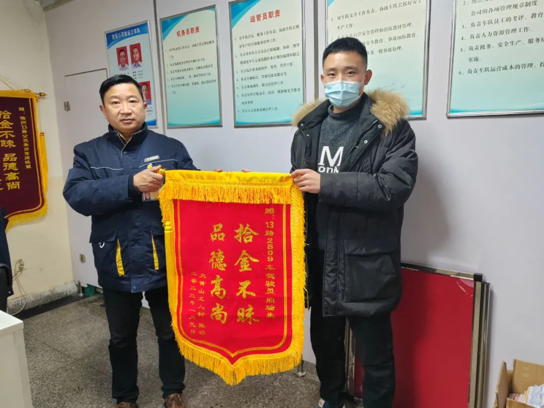 112日上午,京徐巴士公司三車隊(duì)收到一面來自乘客的錦旗。