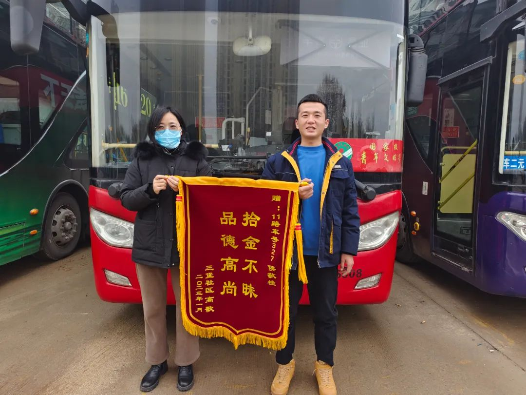 1月19日,失主郭女士通過公交集團(tuán)熱線電話聯(lián)系到車隊(duì)管理人員,經(jīng)過車隊(duì)的查詢落實(shí)后,郭女士與工作人員約好時(shí)間前來取回失物。1月20日,郭女士送來了一面錦旗錦旗,并撥打了熱線電話12345表揚(yáng)駕駛員王怡拾金不昧的精神。王怡熱心助人的行為充分體現(xiàn)了徐州公交駕駛員高尚的道德品質(zhì),他用實(shí)際行動(dòng)體現(xiàn)了 “向善、向美、向上”的價(jià)值追求,在平凡的崗位上傳遞公交正能量。